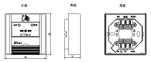 三、J-SAP-EIN22型消火栓按鈕外形及安裝尺寸