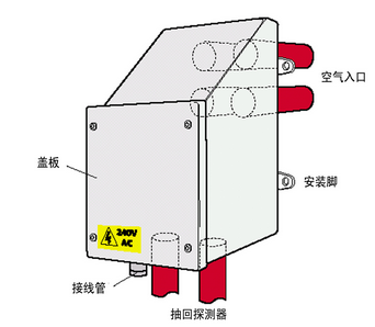 <!--[if !supportLists]-->§ <!--[endif]-->如果沒有維修空間,加熱器和GST空氣采樣式感煙火災探測報警器都可以安裝在建筑物墻上的避免氣候影響的防護箱內(nèi)。